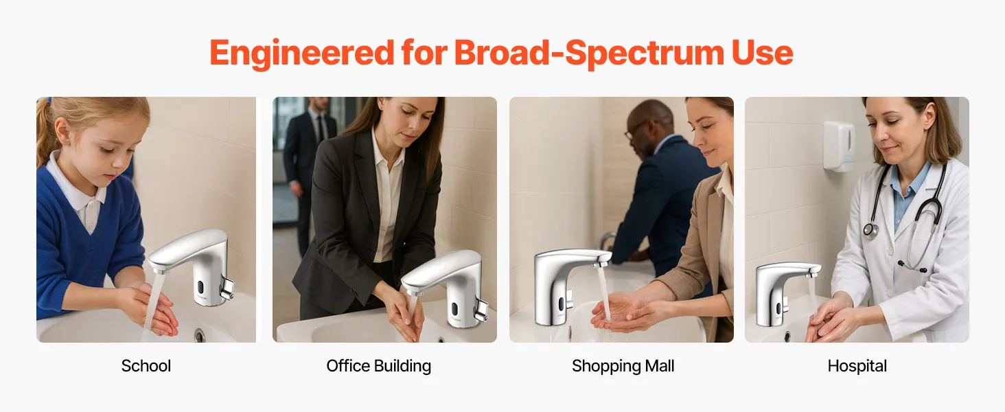 This faucet features a responsive infrared sensor—water flows automatically when hands are near and stops when they leave. Reliable and efficient, no manual contact needed.