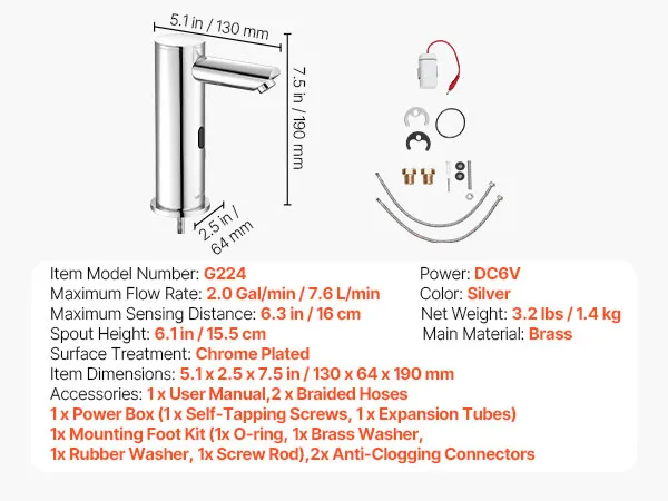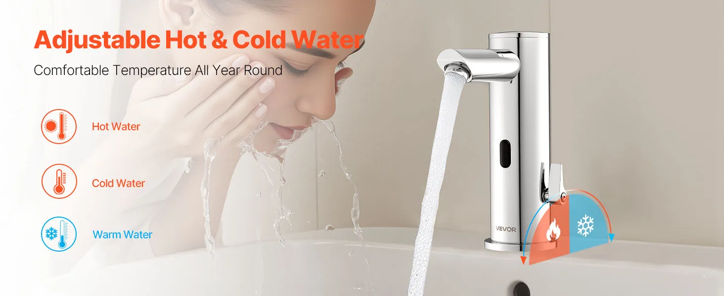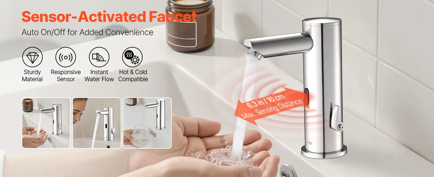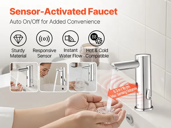 • Automatic Water Flow: Upgrade your bathroom with this touchless bathroom sink faucet. The built-in infrared sensor faucet activates water flow automatically. With a long sensing range, this faucet delivers water effortlessly for easier handwashing