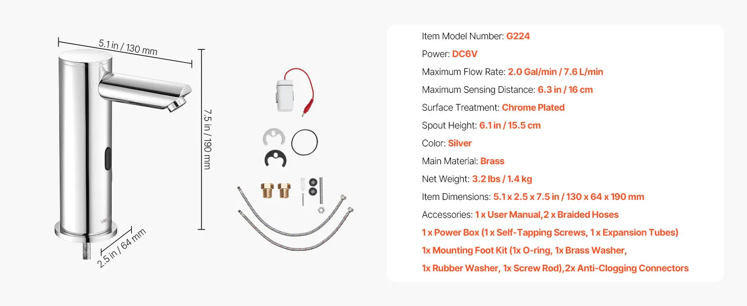 • Sturdy & Rust-Resistant: This touchless faucet is made of brass, offering strong resistance to water exposure. It maintains water quality, withstands wear from frequent use, and performs reliably in damp-prone areas over extended periods