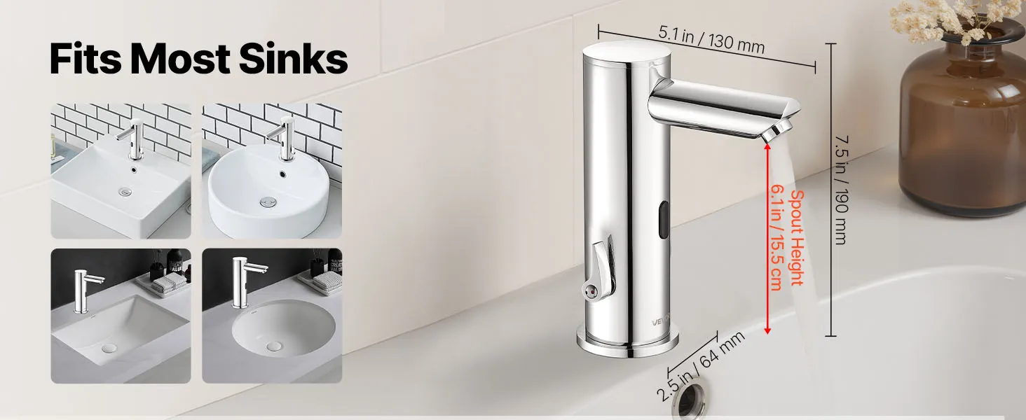 • Highly Compatible: This touchless faucet features a standard installation size, making it compatible with most popular sink brands. Whether you’re upgrading or replacing, it fits seamlessly into your setup for a stress-free installation experience