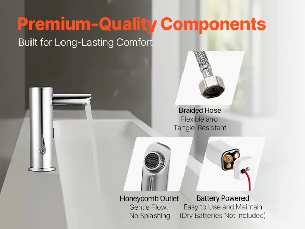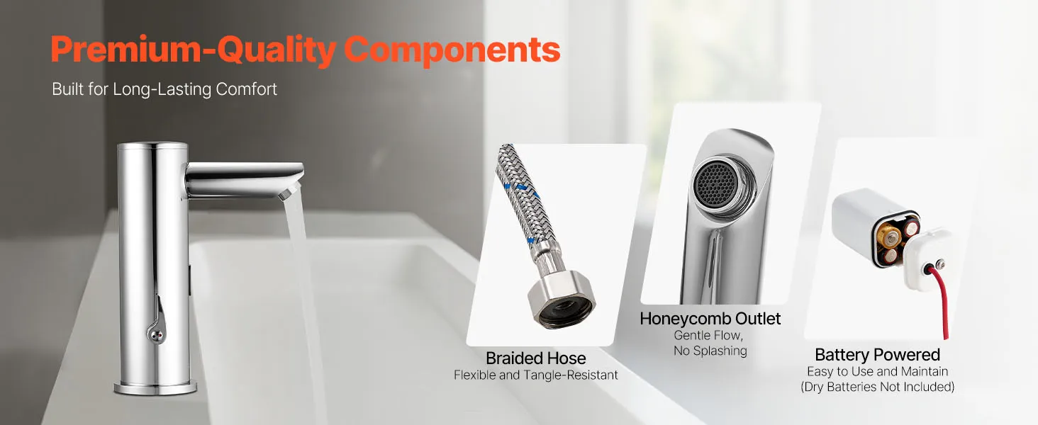 • Easy Maintenance: Powered by 4 AA alkaline batteries (not included), this touchless bathroom faucet is secure and easy to maintain. Simply unscrew the top cap—no tools needed—for quick battery replacement