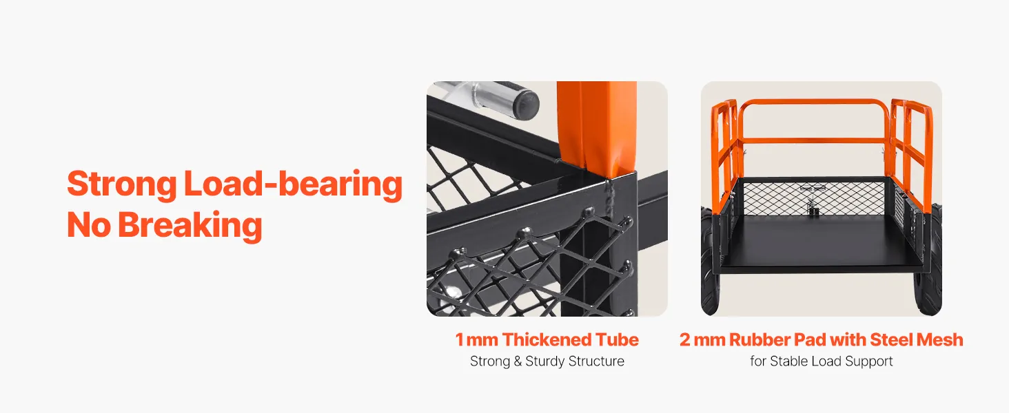 Эта садовая тележка объемом 22 кубических фута идеально подходит для перевозки садовых инструментов, древесины и почвы. Трехсторонние ограждения предотвращают выпадение предметов, обеспечивая безопасную и легкую транспортировку как при крупномасштабном садоводстве, так и при плановом техническом обслуживании.