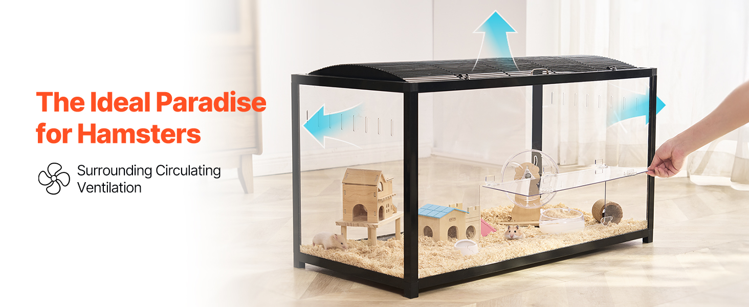 VEVOR Hamster Cage, 360° Viewing Transparent Hamster Habitats, Small Animal Cage, 37.8 x 18.5 x 21.7 in, Ventilated Pet Mouse Cages with Front Door, Portable Hamster House for Rats, Guinea Pigs