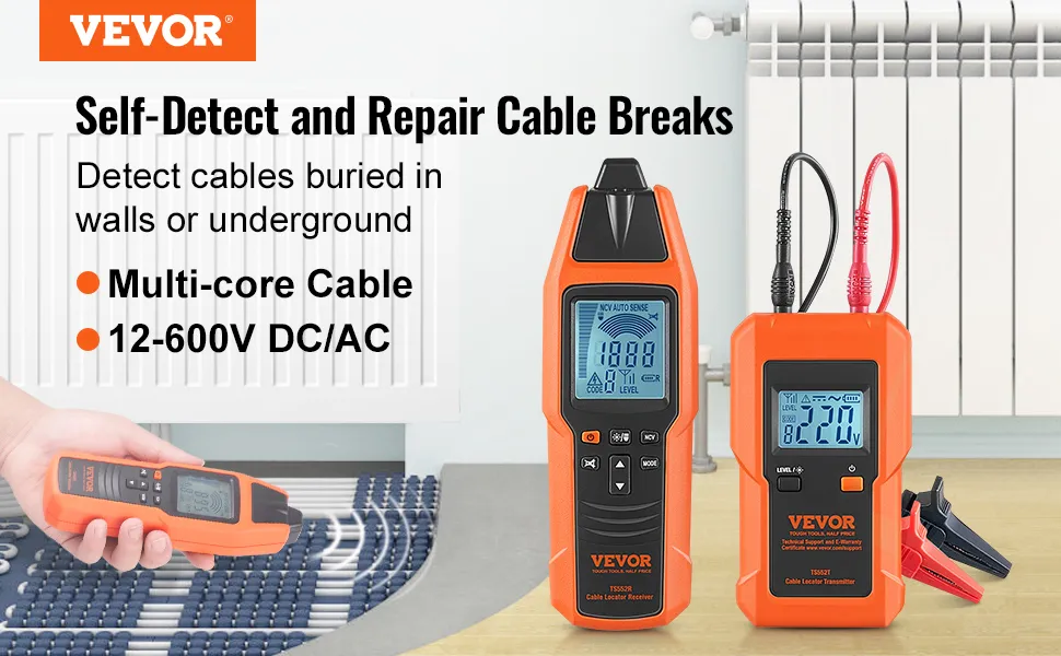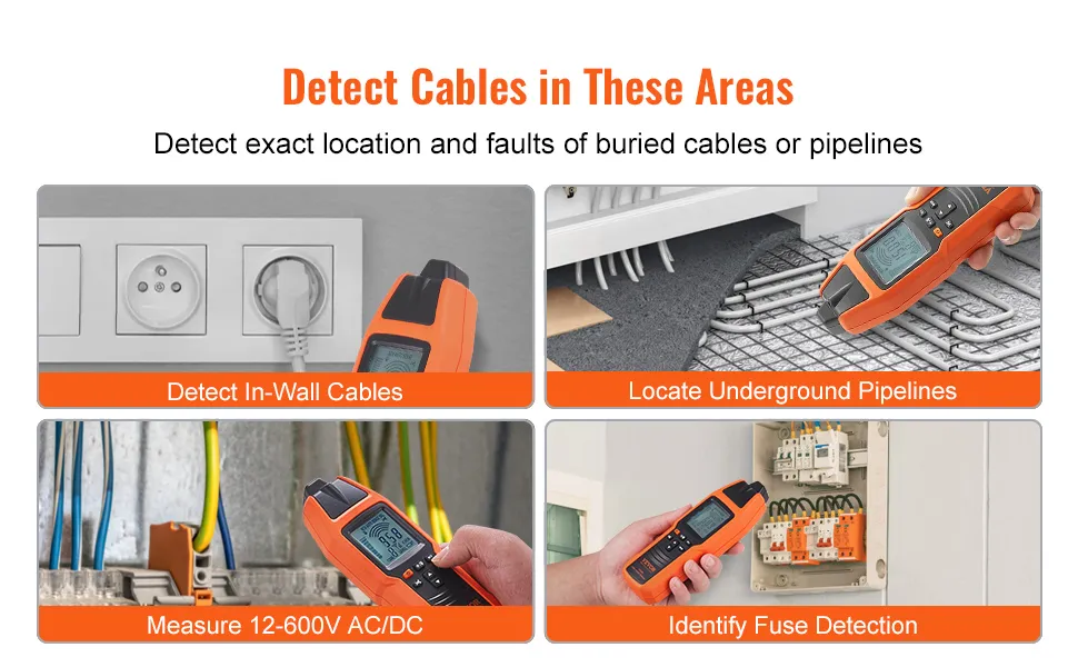 Our underground wire tracer is only designed for multi-core cables and supports voltage ranges from 12 to 600V (NVC). Whether you test non-energized cables, 24V or below low voltage cables, or high-voltage NCV applications like 115V household circuits or 230V industrial circuits, it has you covered.
