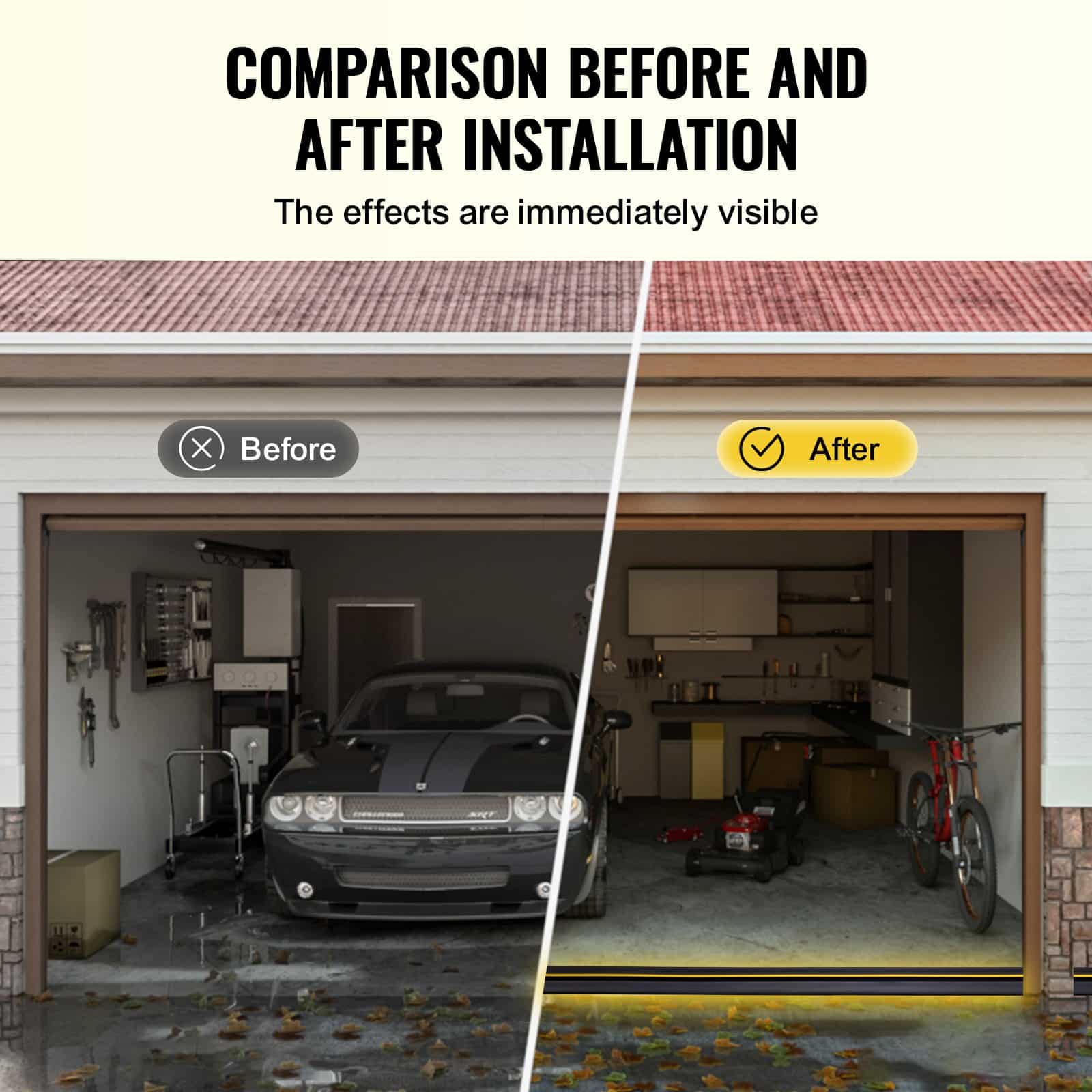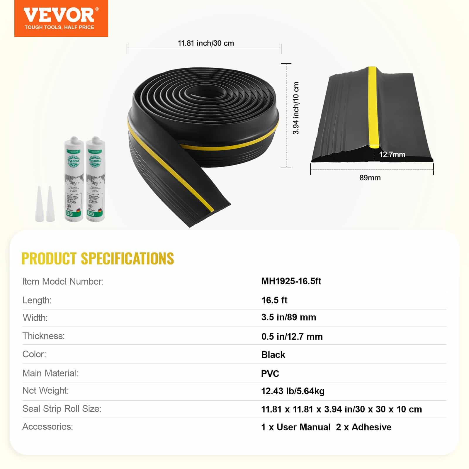 VEVOR Garage Door Threshold Seal Strip, 16.5 FT Universal Garage Door Floor Seal Strip with Adhesive, Garage Door Bottom Weatherproof Strip, Upgraded Thick PVC DIY Weather Stripping Replacement, Black