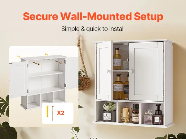 VEVOR Bathroom Wall Cabinet, 2 Doors & Adjustable Shelf, Over the Toilet Storage Medicine Cabinet Wall Mounted, Hanging Organizer with Shelves & Open Partition for Laundry Room Kitchen Restroom, White