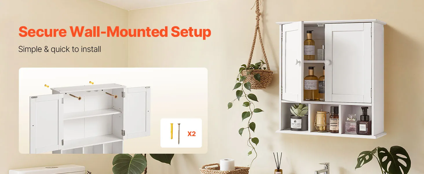 This wall bathroom cabinet features a secure, stable mounting design, complete with a detailed instruction manual and full tool set. No complex operations are needed for easy installation. Whether beginner or non-professional, you can quickly mount the cabinet on the wall.