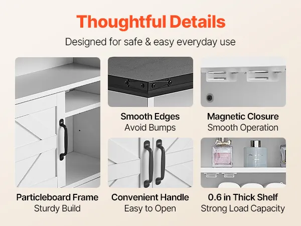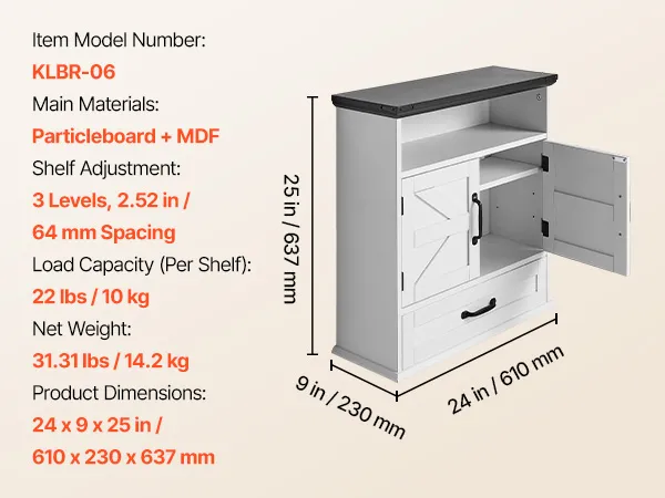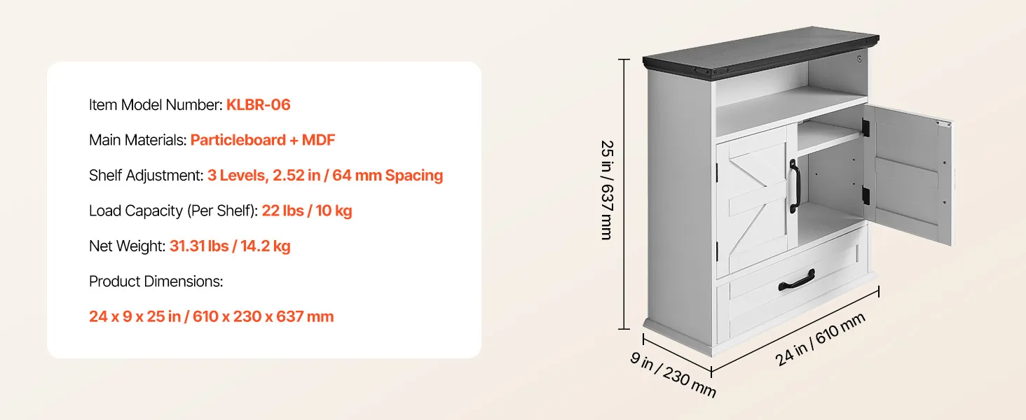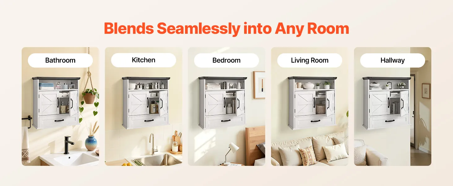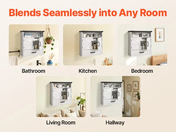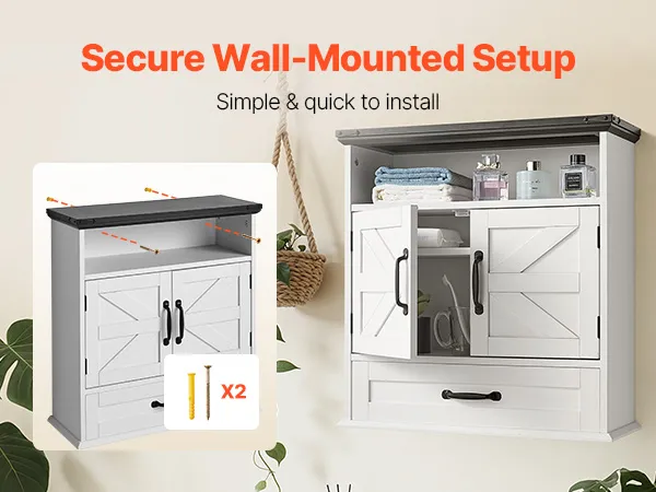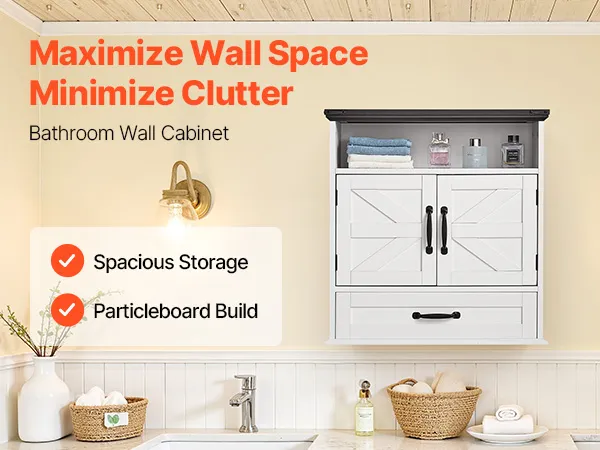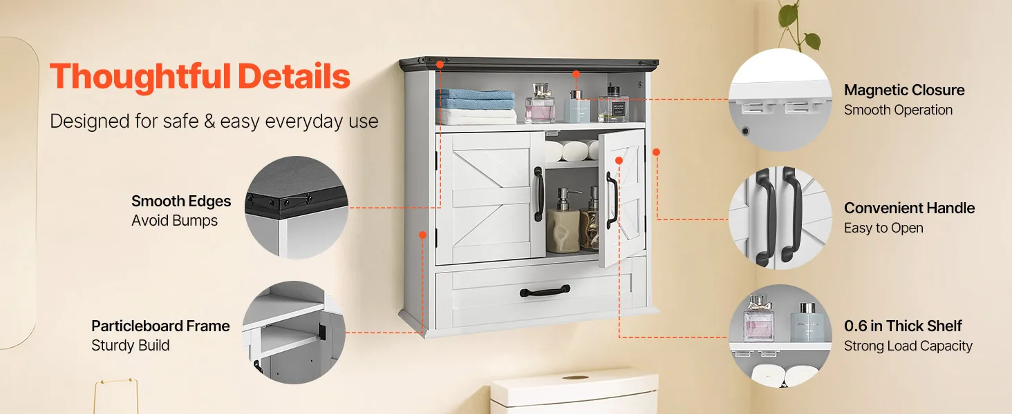 • Sturdy Build: Our wall bathroom cabinet is made of particleboard and MDF. The sturdy structure ensures durability. It is compression-resistant and waterproof, and remains sturdy after long-term use