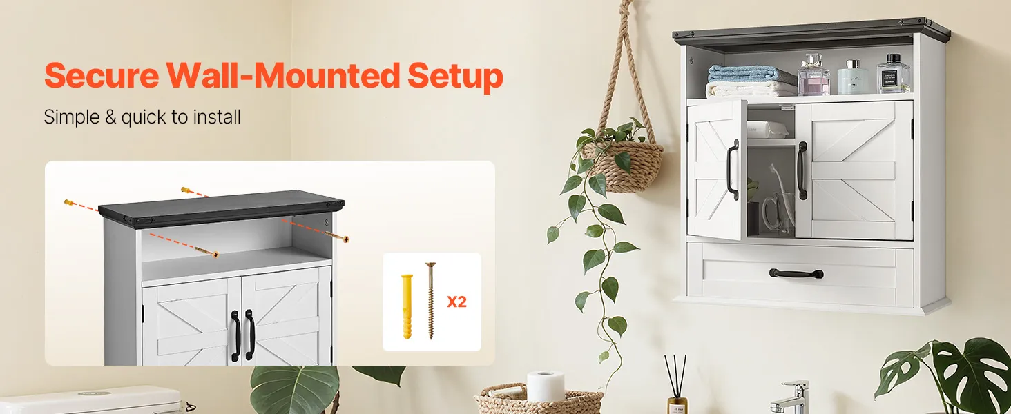 • Easy to Install: This bathroom wall storage cabinet features a wall-mounted design, coming with a full set of installation tools and detailed instructions. No professional skills or extra tools are needed—beginners can quickly finish assembly