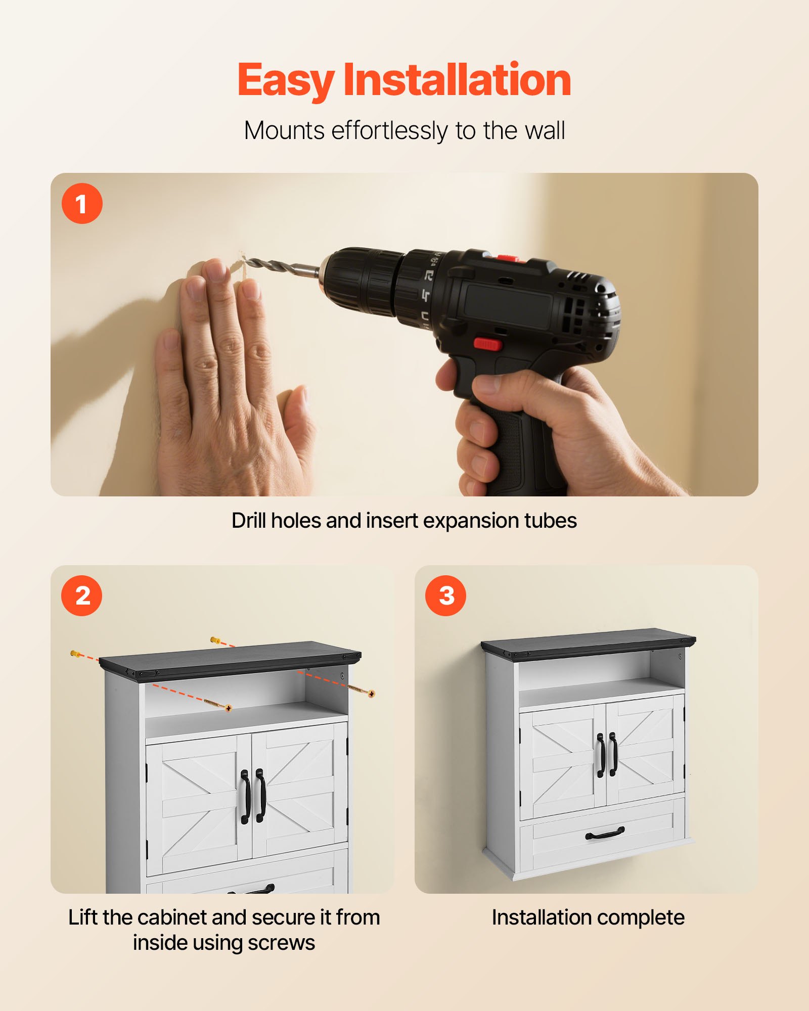 • Easy to Install: This bathroom wall storage cabinet features a wall-mounted design, coming with a full set of installation tools and detailed instructions. No professional skills or extra tools are needed—beginners can quickly finish assembly