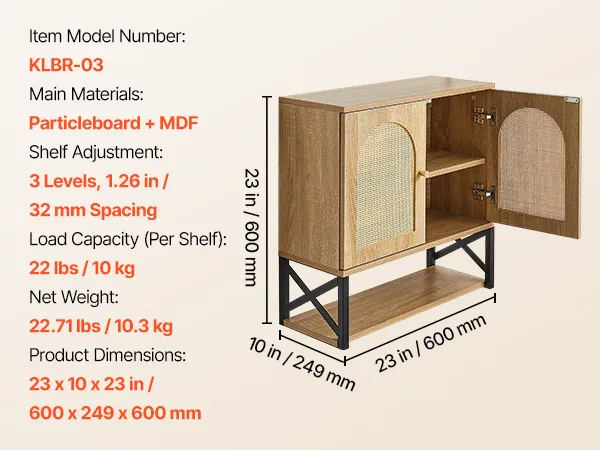 - 23 x 10 x 23 in/600 x 249 x 600 mm