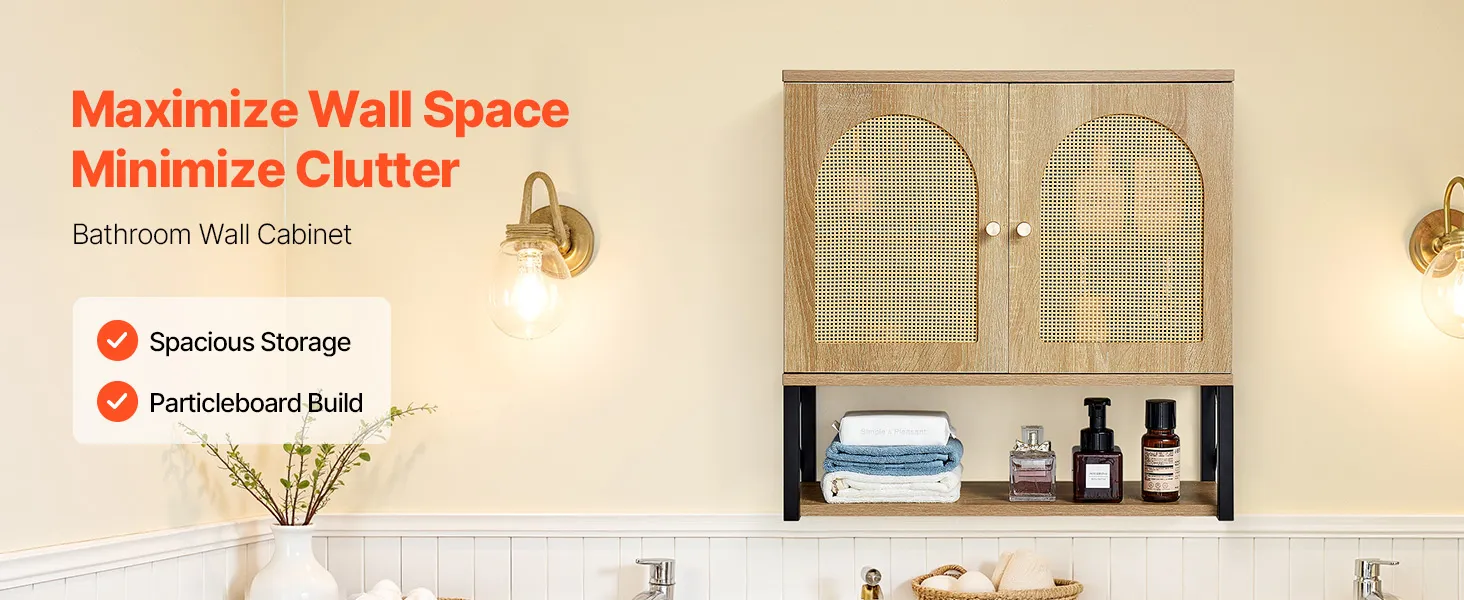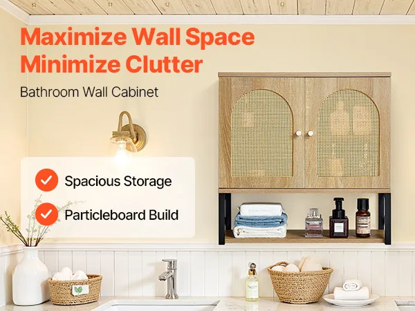 This bathroom wall cabinet features premium particleboard, sturdy, durable, and appealing. Its spacious interior with 3-level adjustable shelf maximizes vertical storage. Our bathroom wall cabinet meets the storage needs of various toiletries and miscellaneous items.