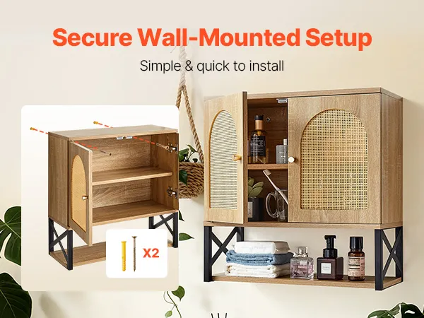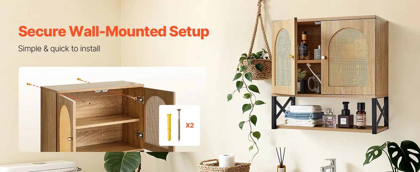This wall bathroom cabinet features a secure, stable mounting design, complete with a detailed instruction manual and full tool set. No complex operations are needed for easy installation. Whether beginner or non-professional, you can quickly mount the cabinet on the wall.