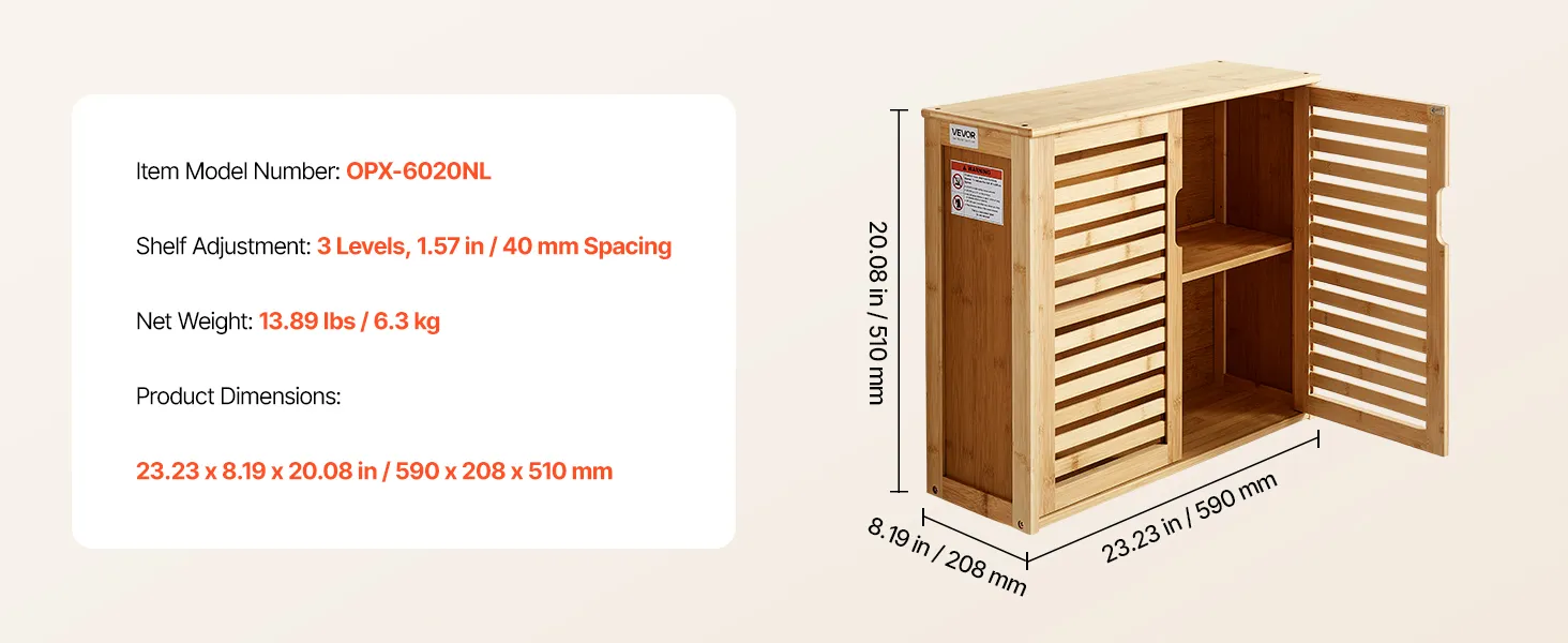 VEVOR Bathroom Wall Cabinet, 2 Doors and Adjustable Shelf with 3 Height Levels, Over the Toilet Storage Medicine Cabinet Wall Mounted, Hanging Organizer with Shelves for Laundry Room Kitchen Restroom