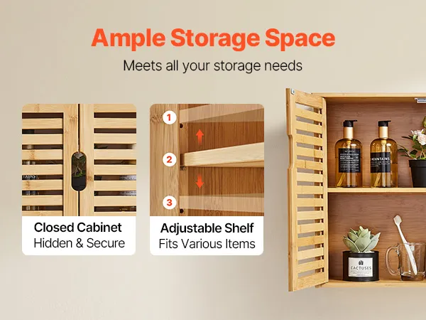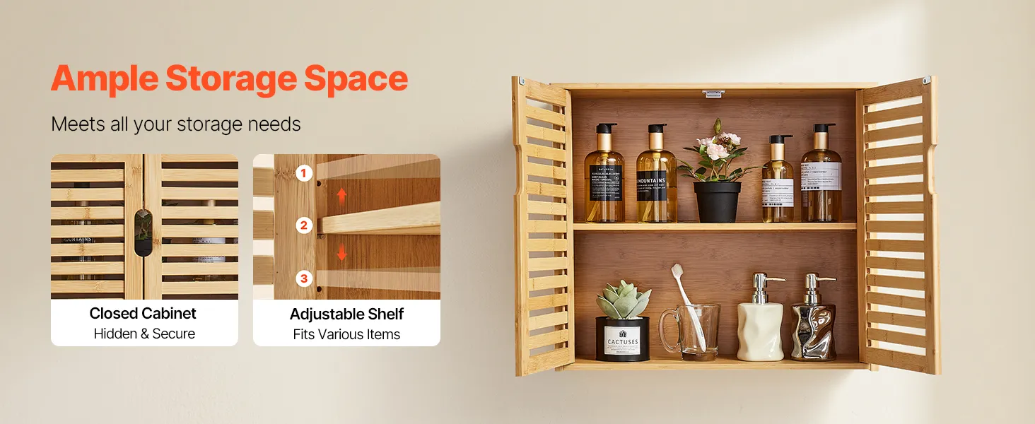 This bathroom wall cabinet features a premium build, sturdy, durable, and appealing. Its spacious interior with 3-level adjustable shelf maximizes vertical storage. Our bathroom wall cabinet meets the storage needs of various toiletries and miscellaneous items.
