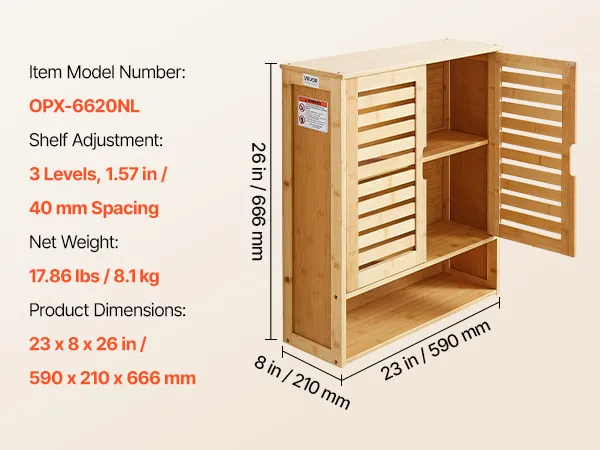 - 23 x 8 x 26 in/590 x 210 x 666 mm
