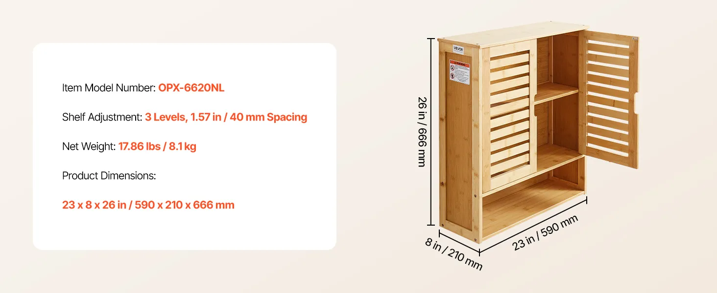 This bathroom wall cabinet features a premium build, sturdy, durable, and appealing. Its spacious interior with 3-level adjustable shelf maximizes vertical storage. Our bathroom wall cabinet meets the storage needs of various toiletries and miscellaneous items.