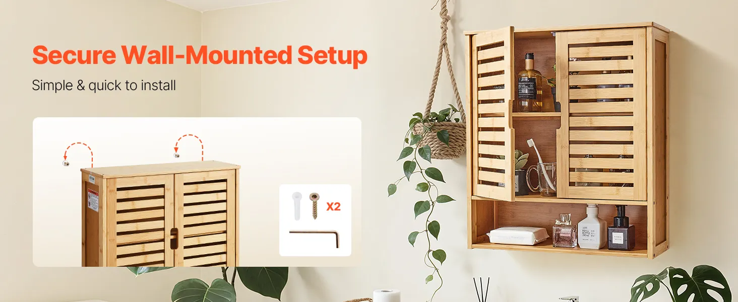 This wall bathroom cabinet features a secure, stable mounting design, complete with a detailed instruction manual and full tool set. No complex operations are needed for easy installation. Whether beginner or non-professional, you can quickly mount the cabinet on the wall.