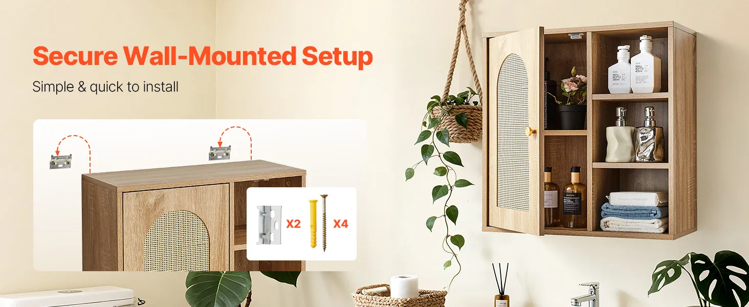 This wall bathroom cabinet features a secure, stable mounting design, complete with a detailed instruction manual and full tool set. No complex operations are needed for easy installation. Whether beginner or non-professional, you can quickly mount the cabinet on the wall.