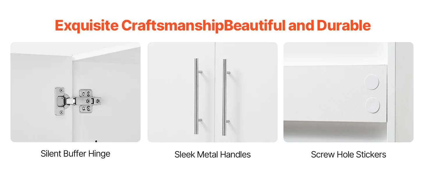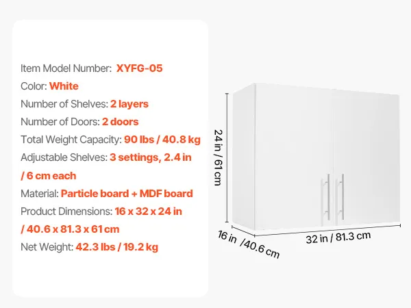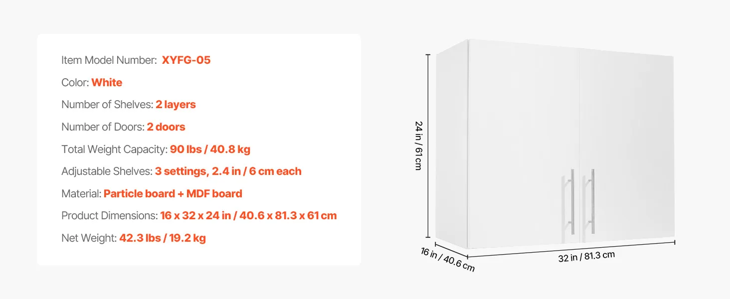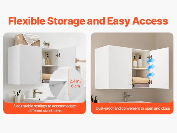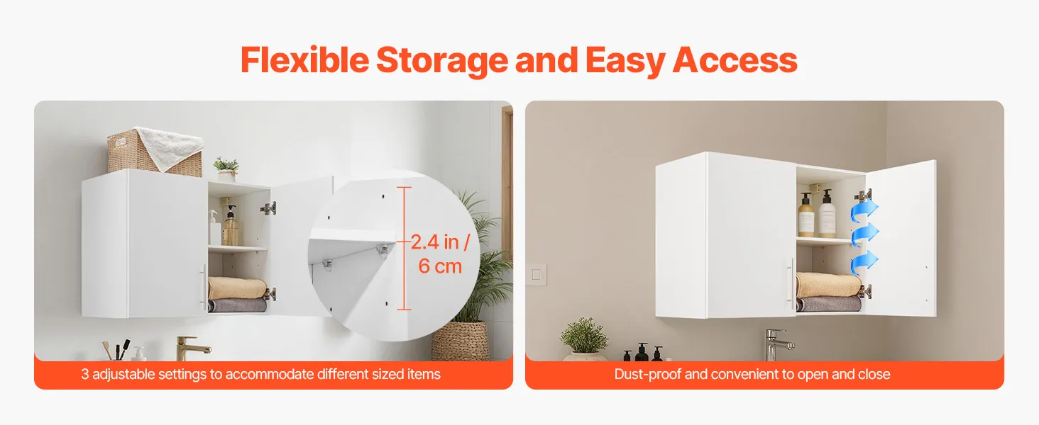 VEVOR Laundry Room Wall Cabinet, 2-Tier Wall Mounted Hanging Cabinet with Adjustable Shelf, Cupboard Storage with 2 Doors, for Bathroom, Kitchen, Laundry, 40.6 x 81.3 x 61 cm (D x W x H), White