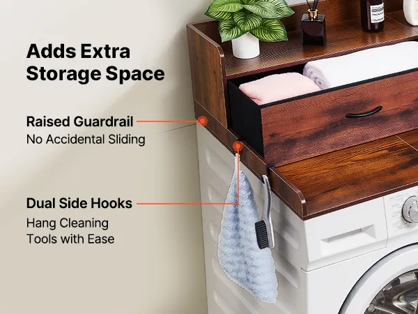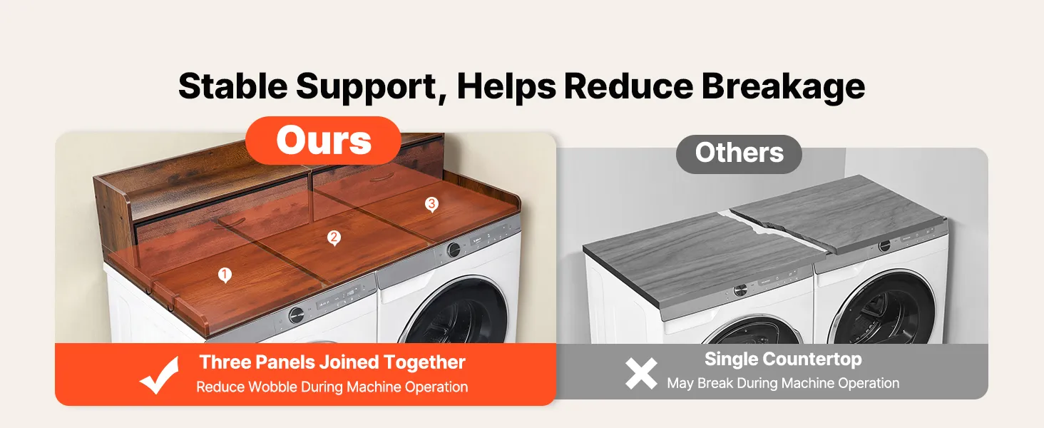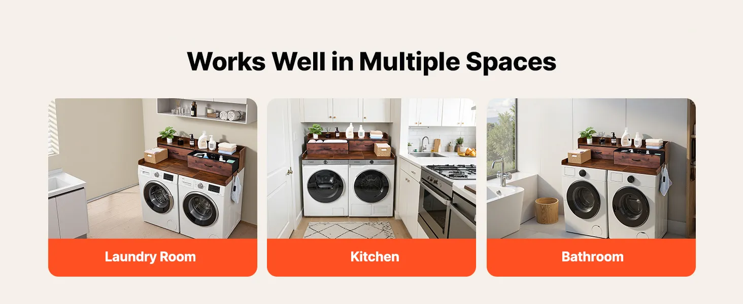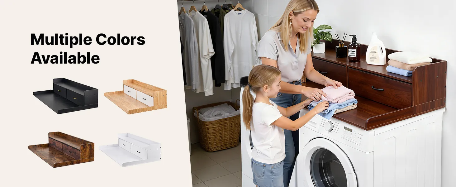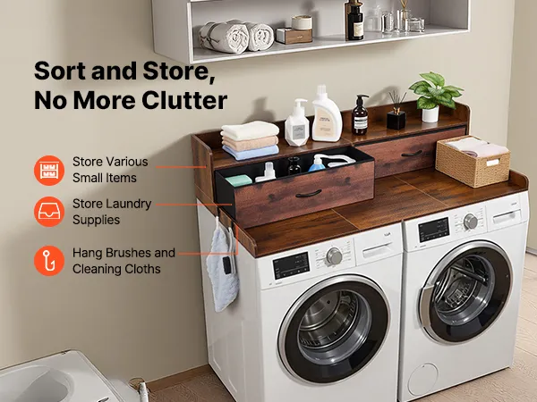 Place this washer dryer countertop above your machines to add extra storage and a work surface for folding clothes, ironing, or keeping laundry supplies within reach.