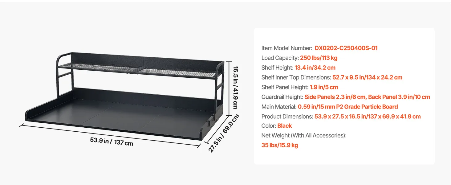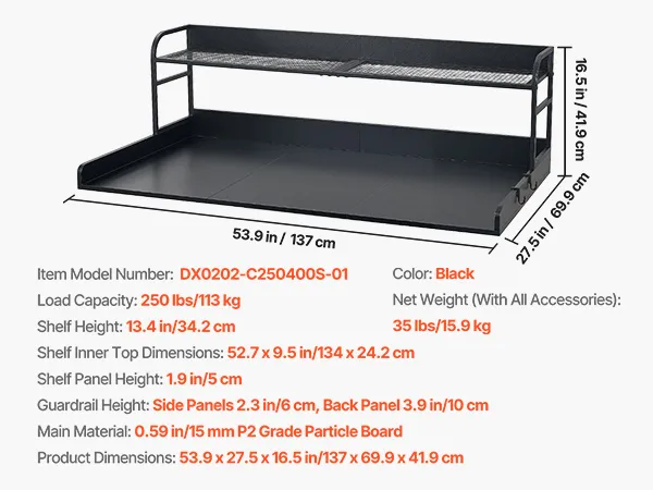 VEVOR Washer Dryer Countertop with Shelf, 137 x 69.9 cm Wooden Washer and Dryer Topper with Edge and 2 Hooks, Laundry Machine Topper for Laundry Closet Pantry Counter Organization and Storage, Black