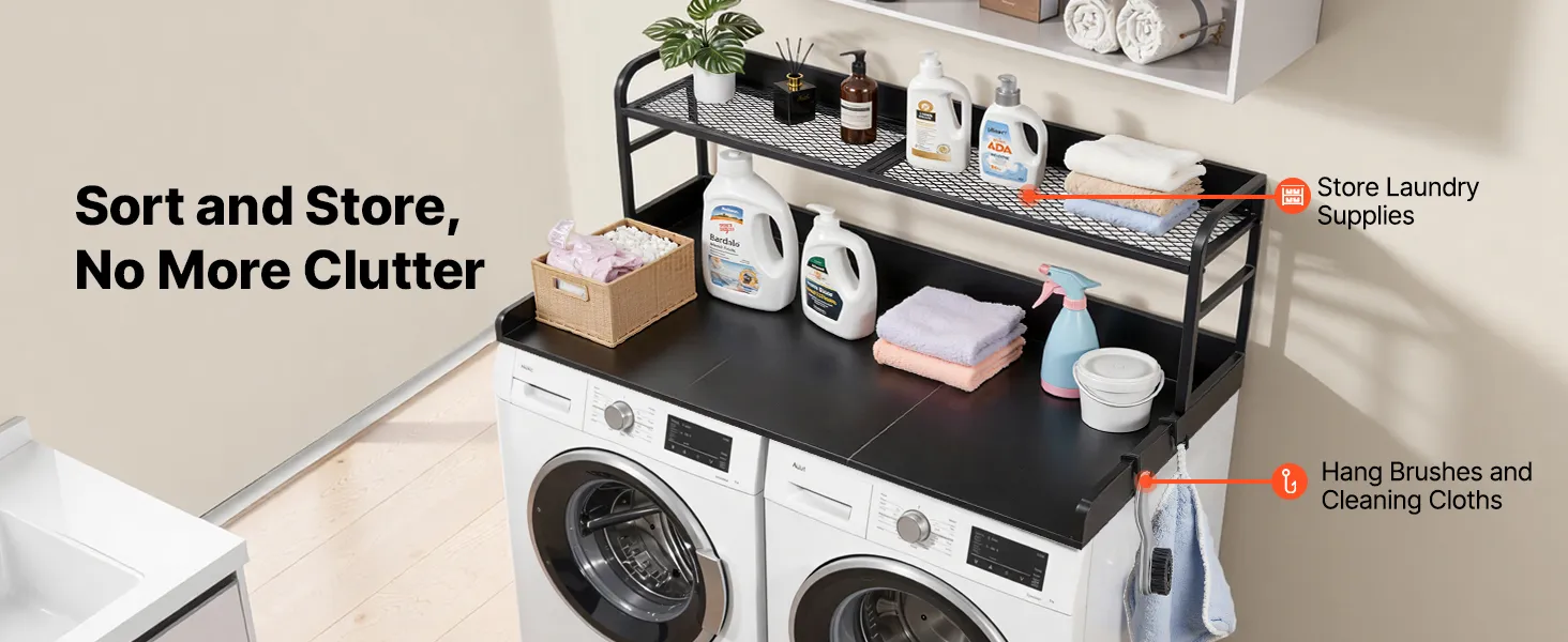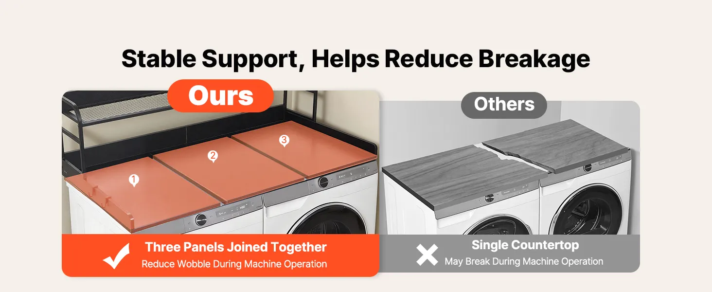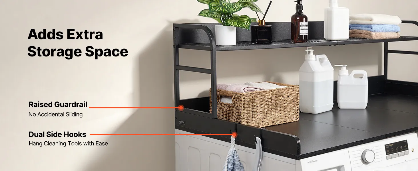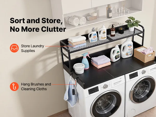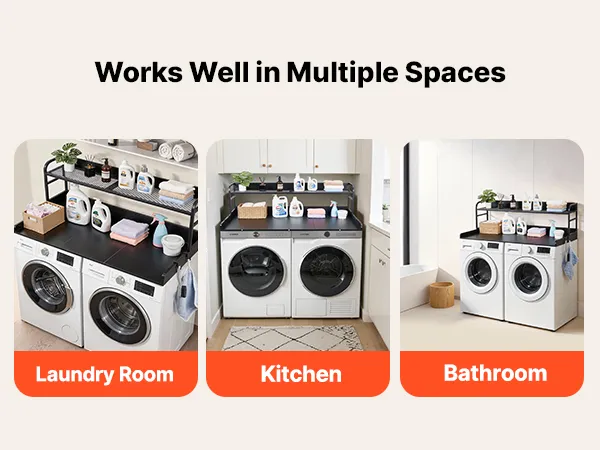 Place this washer dryer countertop above your machines to add extra storage and a work surface for folding clothes, ironing, or keeping laundry supplies within reach.