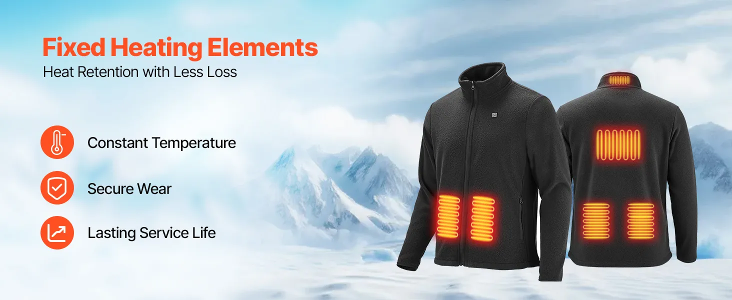 Our heated fleece jacket provides a reliable performance to maintain a constant temperature and warmth anytime, anywhere. It is ideal for outdoor work in severe cold, sports, camping, cycling, commuting, and air-conditioned rooms, also for sharing with family or friends.