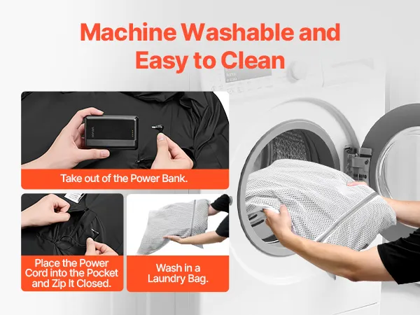 Crafted from high-density, durable fabric, this work heated jacket is machine washable. Just move the battery, secure the cable, and toss it in the washer.