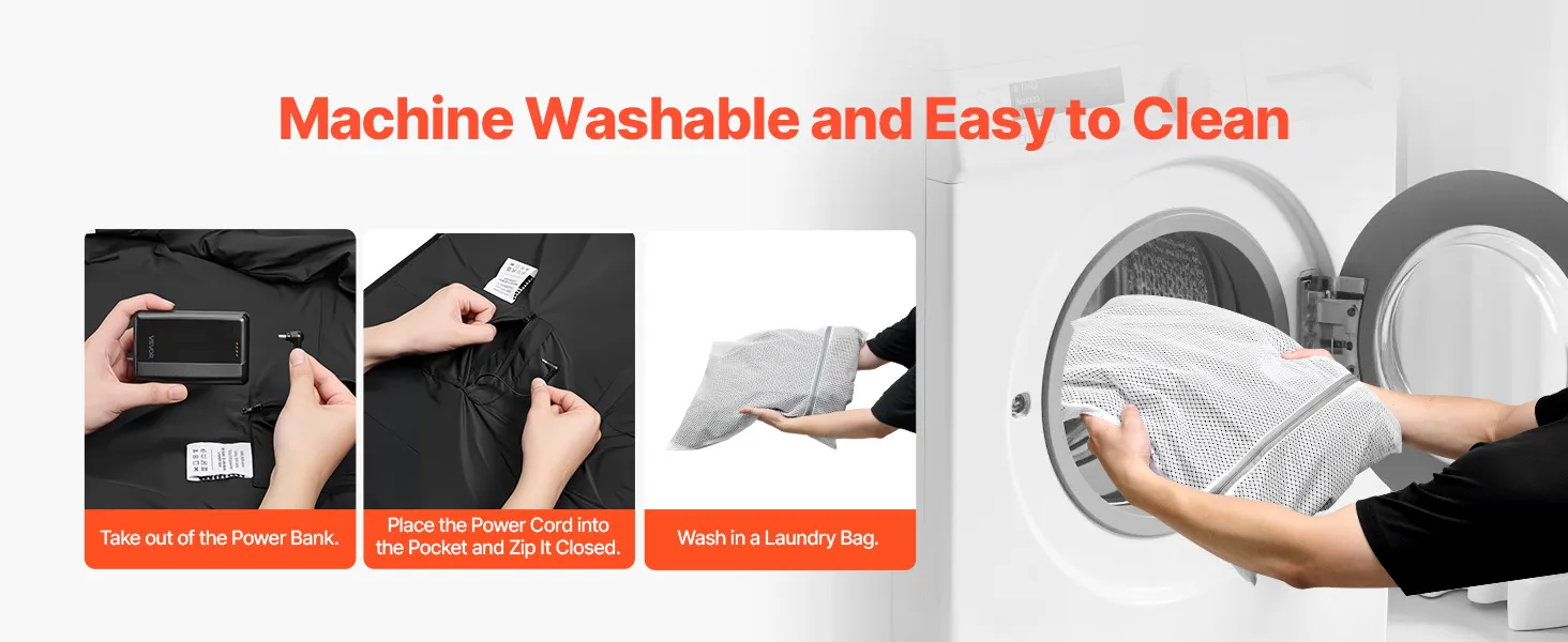 Crafted from high-density, durable fabric, this work heated jacket is machine washable. Just move the battery, secure the cable, and toss it in the washer.