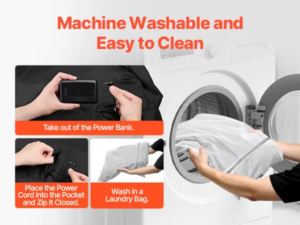 Crafted from high-density, durable fabric, this work heated jacket is machine washable. Just move the battery, secure the cable, and toss it in the washer.