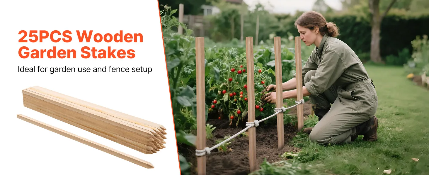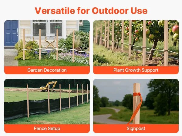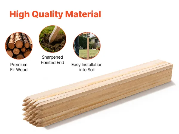 These fir wooden garden stakes are ideal for building fences, supporting plants, marking pathways, and creating decorative borders. With a pointed design for easy soil insertion, they come in multiple sizes to suit different plants and outdoor needs. Ideal for gardening, farms, and outdoor projects.