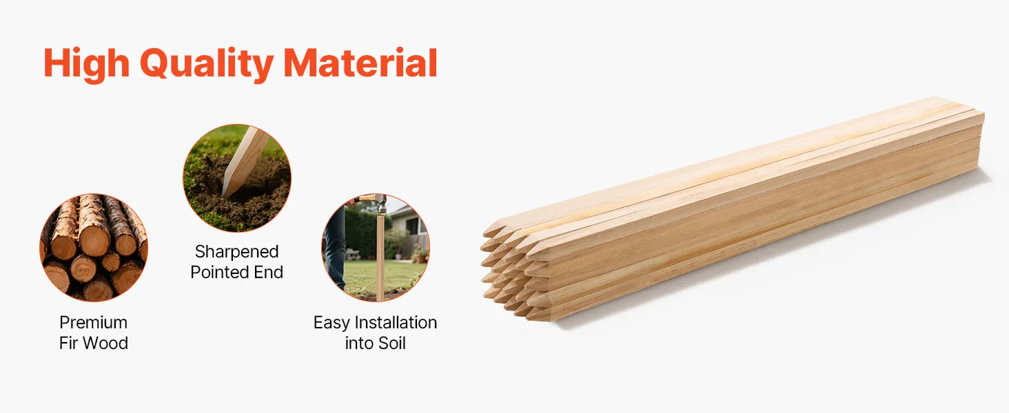 VEVOR Wooden Garden Stakes, 25 Pcs 19.05×19.05×1219.2 mm Survey Grading Stakes, Garden Ground Stake with Sharp Point, Fir Wood Plant Support Stake, Sign Posts for Silt Fence Yard Boundary Baselines