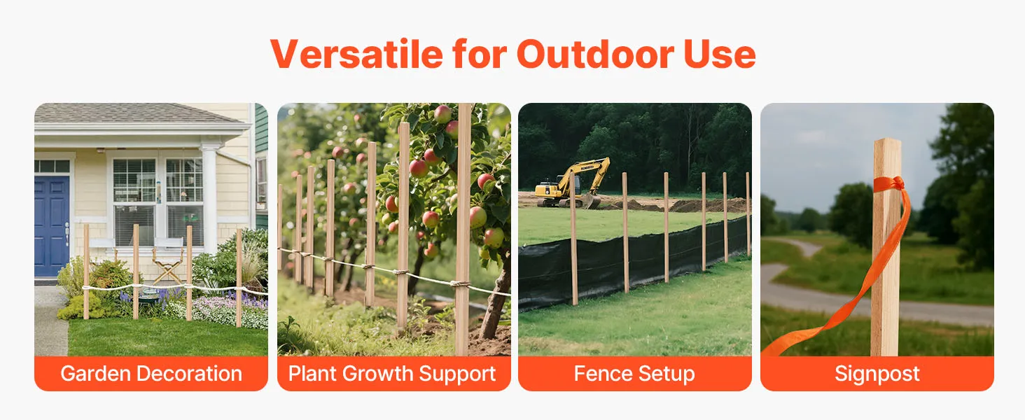 In addition to gardening, these wooden survey stakes are perfect for various uses such as fence installation, measuring projects, directional signs, and construction sites.
