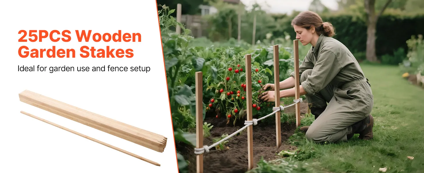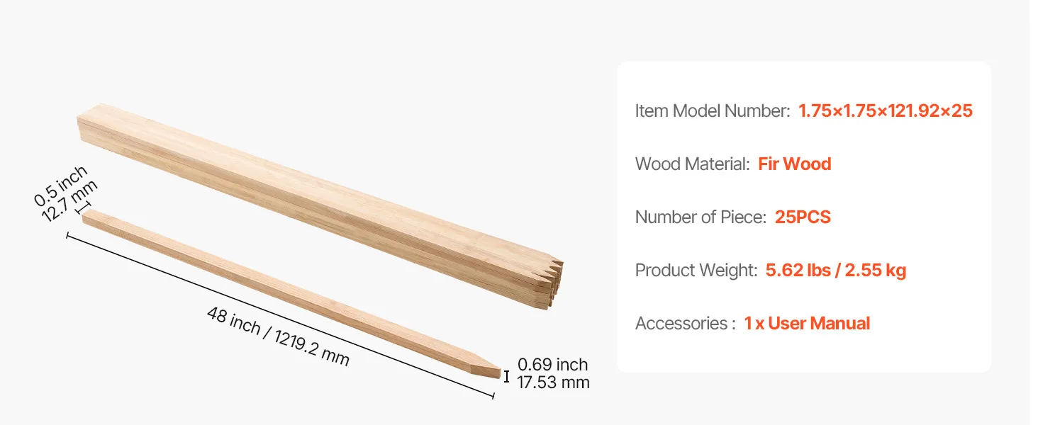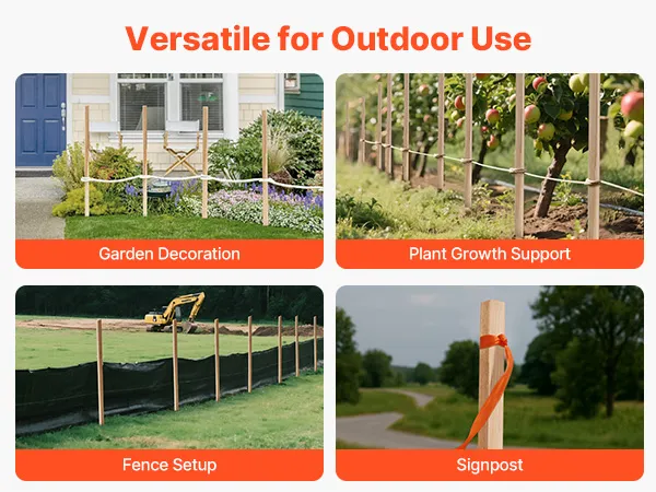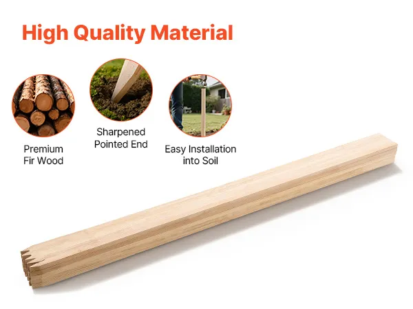 These fir wooden garden stakes are ideal for building fences, supporting plants, marking pathways, and creating decorative borders. With a pointed design for easy soil insertion, they come in multiple sizes to suit different plants and outdoor needs. Ideal for gardening, farms, and outdoor projects.