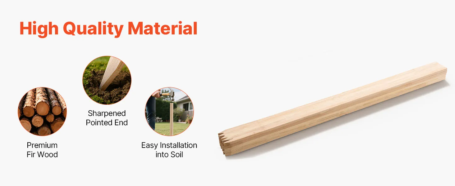 Made from high-quality cedar wood, our grading stakes are ideal for outdoor use, ensuring long-lasting durability and peace of mind.