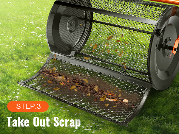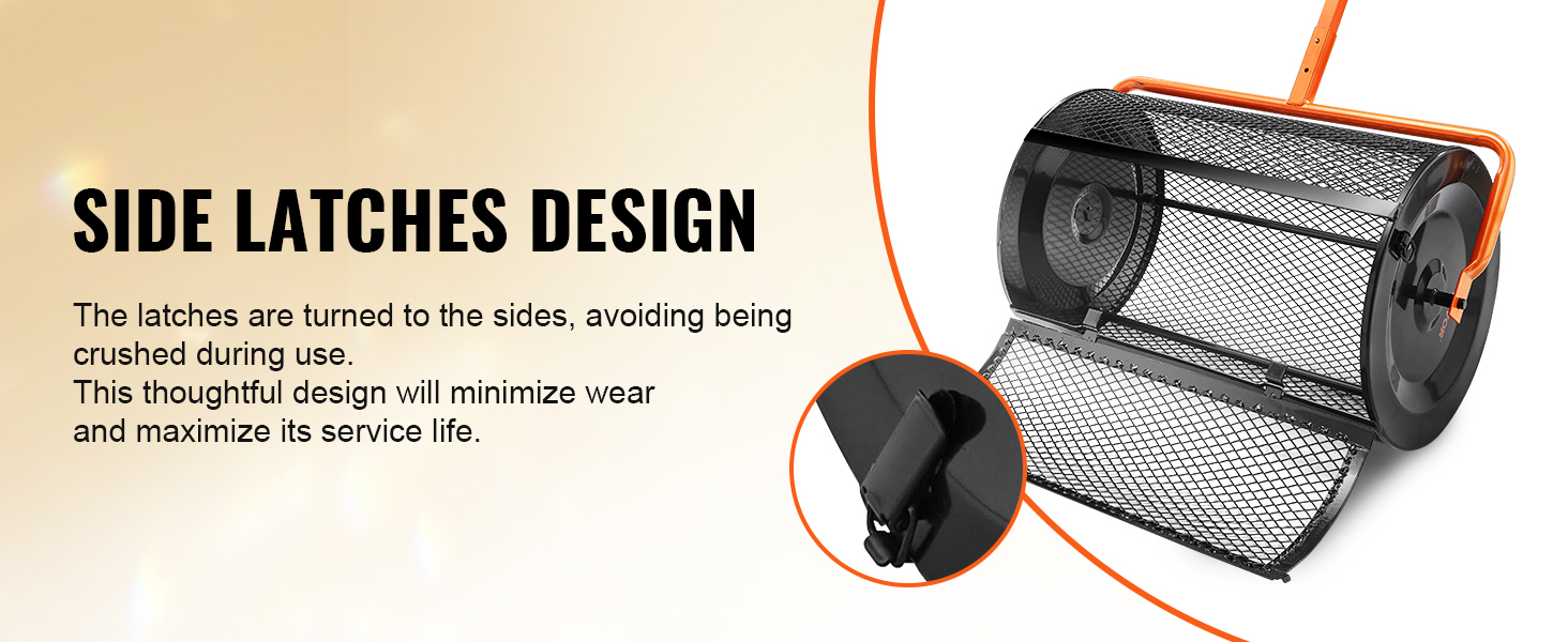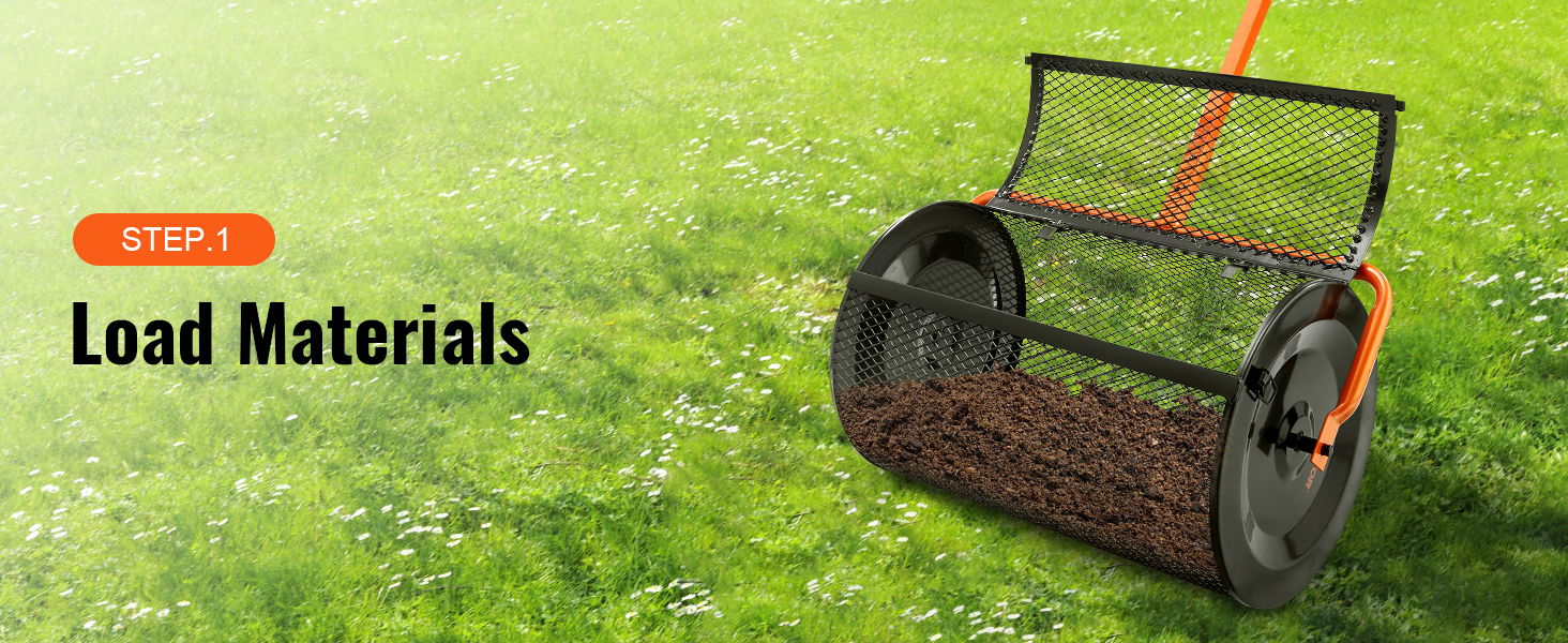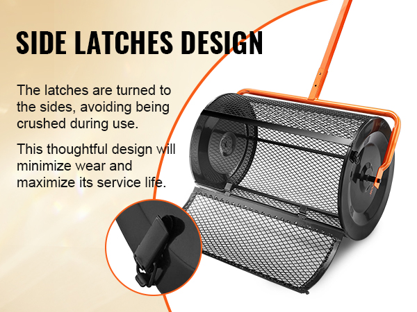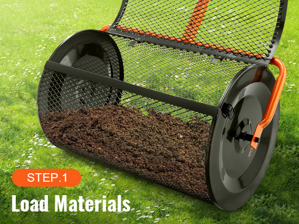 Разбрасыватель компоста VEVOR, 24,4-25,6" регулируемая по высоте ручка, 24" ширина, валик для торфяного мха для газона и сада с боковыми защелками, стальная сетчатая корзина с порошковым покрытием для разбрасывания навоза, почвы, черный