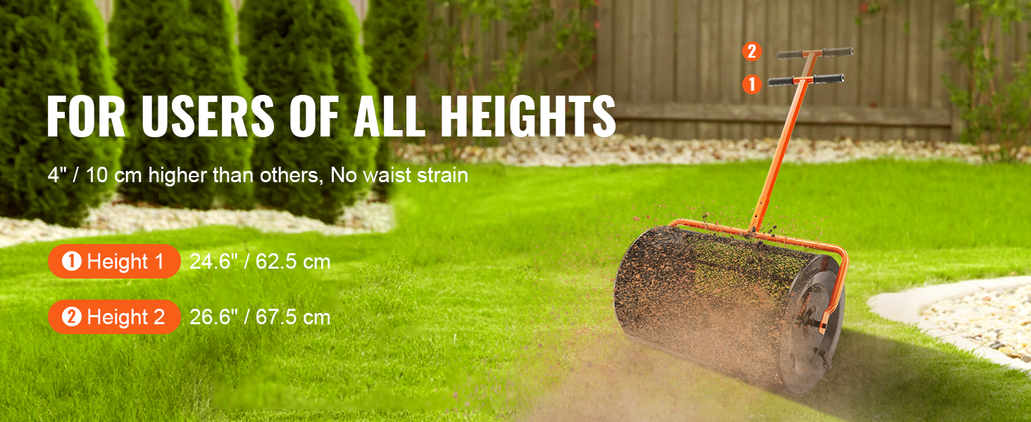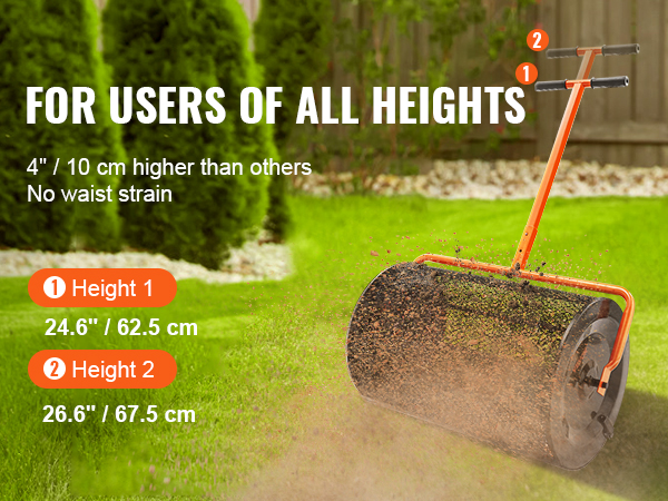Длину этого разбрасывателя торфяного мха очень просто отрегулировать от 24,4 " до 26,4 ". Правильная высота избавит вас от необходимости постоянно наклоняться во время работы.