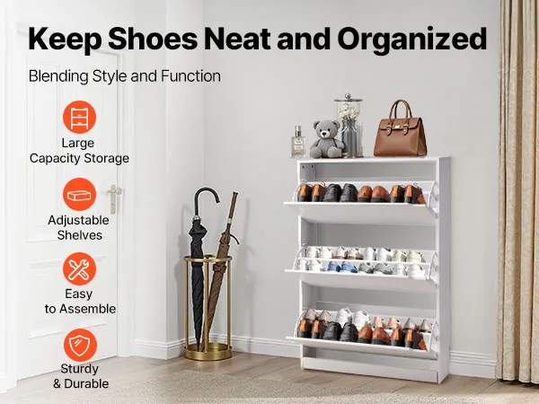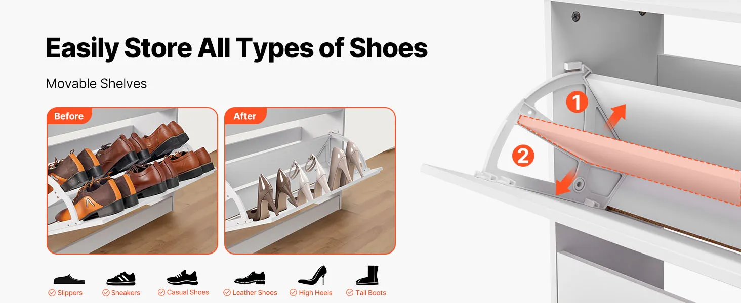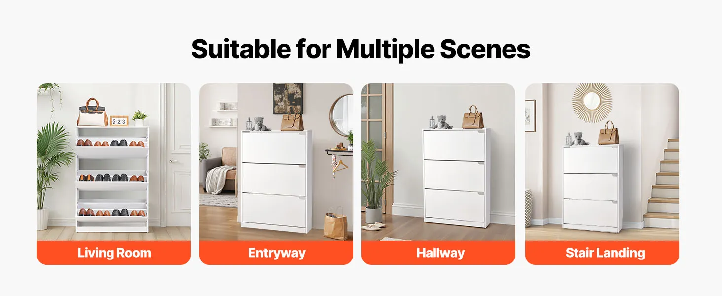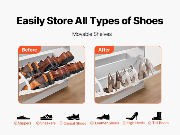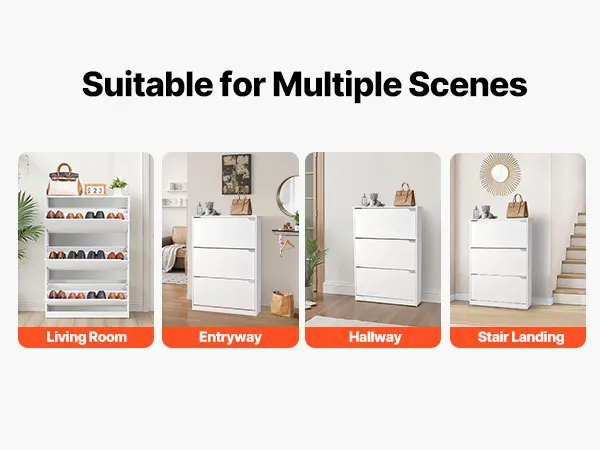 • Modern Minimalist Style: This shoes storage cabinet features a stylish and minimalist design that blends into any home decor. Ideal for living room, hallway, entryway, or foyer, it helps create a neat and organized home environment while adding elegance