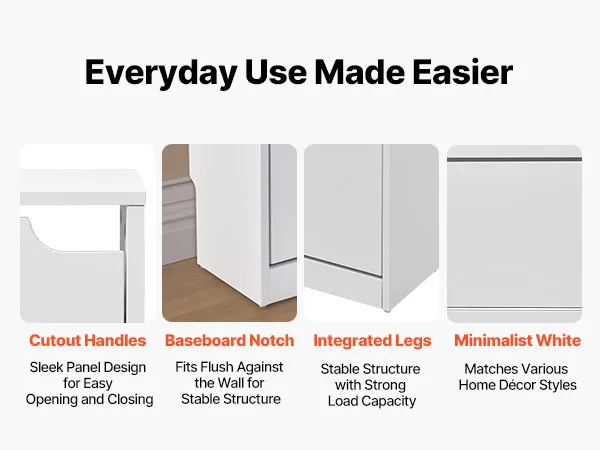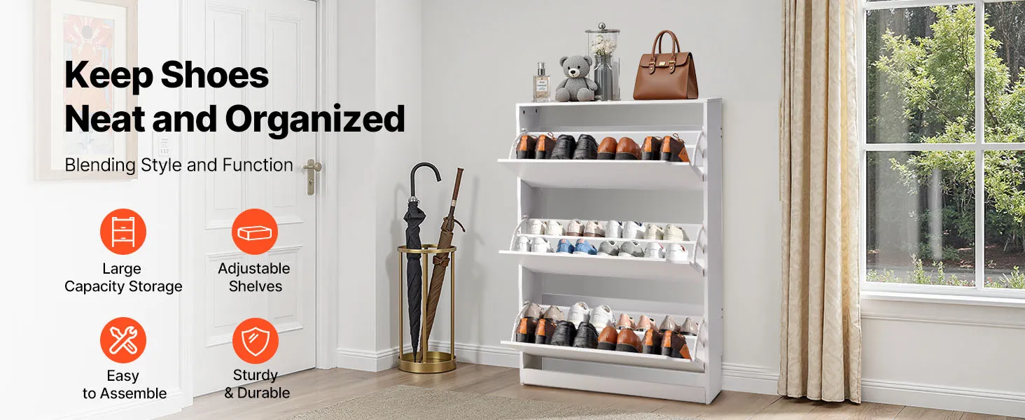 • Large Storage Capacity: Comes with 3 flip drawers, and each drawer has two storage layers, allowing frequently worn shoes to be accessed with a single flip. The top surface can hold decorations or vases