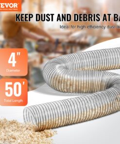 VEVOR 102мм x 15,24м прозрачный ПВХ шланг для сбора пыли с проволокой и хомутами, гибкий и прочный