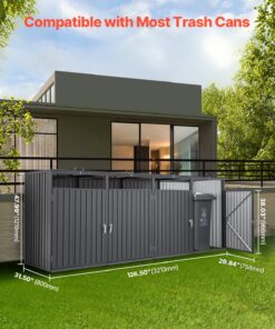 VEVOR уличный шкаф для мусорных баков 4 x 200 л, оцинкованная сталь, с замком, водостойкий, для сада или террасы