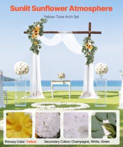 VEVOR Artificial Wedding Arch Flowers & Drapes Kit (5 pcs) – Silk Floral Arrangements & 10m Sheer Drapes for Ceremonies & Events