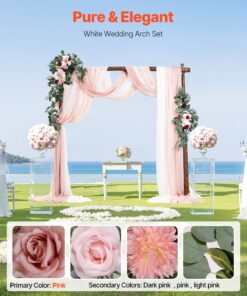 VEVOR Pink Artificial Wedding Arch Flowers & Drapes Kit (4-Pack), 2 Silk Flower Arrangements & 2 Sheer 6.4m Drapes for Ceremony Decor