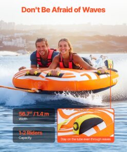 VEVOR 1-2 Rider Towable Tube for Boating, Inflatable Water Tube with Fins, 154kg Capacity, Nylon Cover & Padded Handles