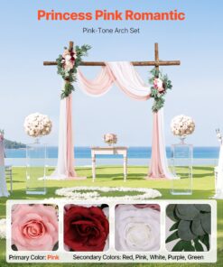 VEVOR Набор Розовых Искусственных Цветов и Тюля для Свадебной Арки (4 шт.), 2 Шелковые Композиции и 2 Прозрачные Шторы 6,4 м