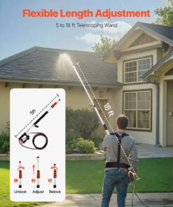 VEVOR телескопическая мойка высокого давления 5,5 м, 275 бар, с очистителем желобов, щеткой, 5 насадками и ремнем поддержки