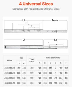 VEVOR направляющие для ящиков 60см, 10 пар, полное выдвижение, шариковые, 45кг, боковое крепление для шкафов и комодов