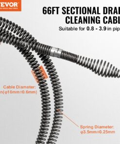 VEVOR 20м x 16мм секционный трос для прочистки труб с 7 насадками для труб 20–100мм, пружинная сталь