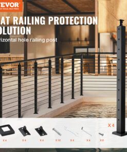 VEVOR перила из нержавеющей стали 106x5x5 см с отверстиями под углом 30° для лестниц, черный, 1 шт.